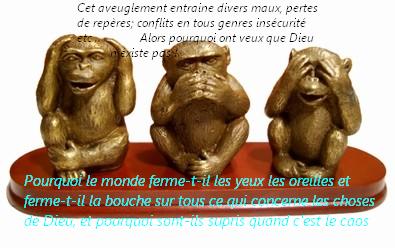 cet aveuglement entraine divers maux: perte des repères moraux;; sentiments d'insécurité, conflits de toutes sortes.