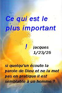 Si quelqu'un écoute la parole( de Dieu ) sans la mettre en pratique il est semblable à un homme qui se regarde qui observe son visage naturel dans un mimroir , il s'est observer lui-meme s'en est allé et aussitot il a oublié comment il était !
