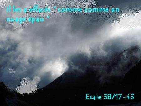 Dieu ne nous voit plus alors dans nos péchés, mais c'est Christ purifiés sans péché. dieu" a jeté derrière son dos" tous les péchés de chacun de ceux qui croient; il ne s'en souviendra plus; il les a effacés comme un nuage épais Esaie 368/17-43/25-44/22.